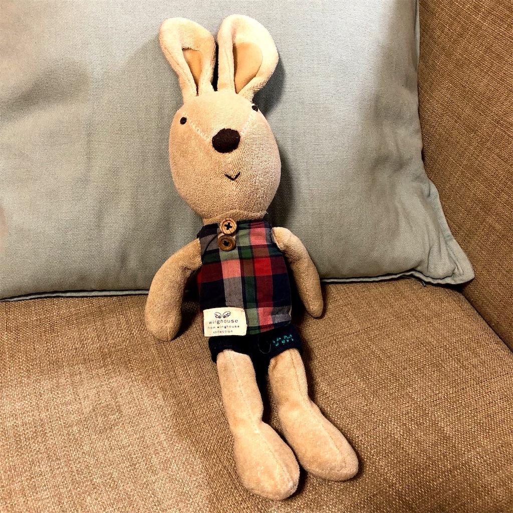 ぽにちゃんはいつも👇のウサギのぬいぐるみを抱っこしていて。